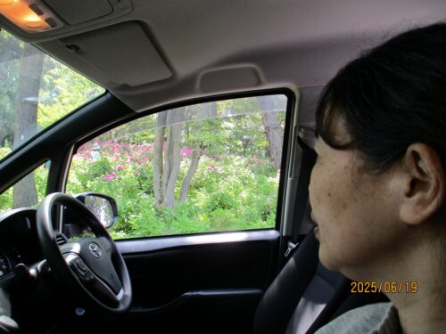 気温が高く 蒸し暑かったので、車内にて紫陽花を鑑賞していただきました。
