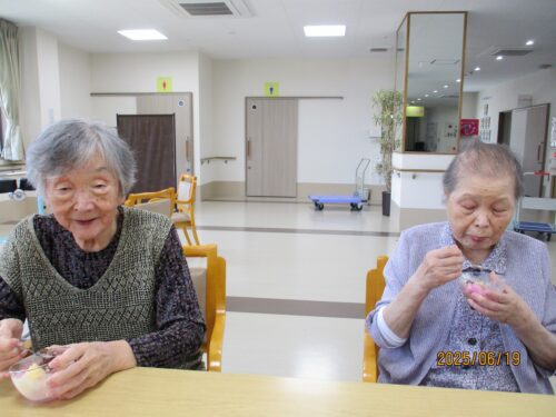 紫陽花鑑賞の後は、施設に戻って、かき氷を召し上がっていただきました。
