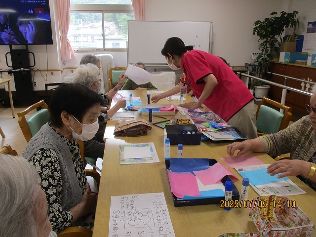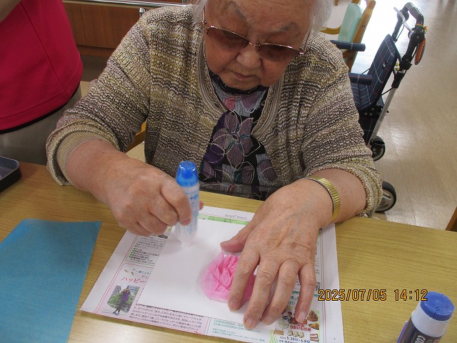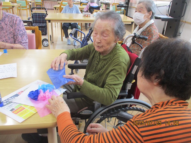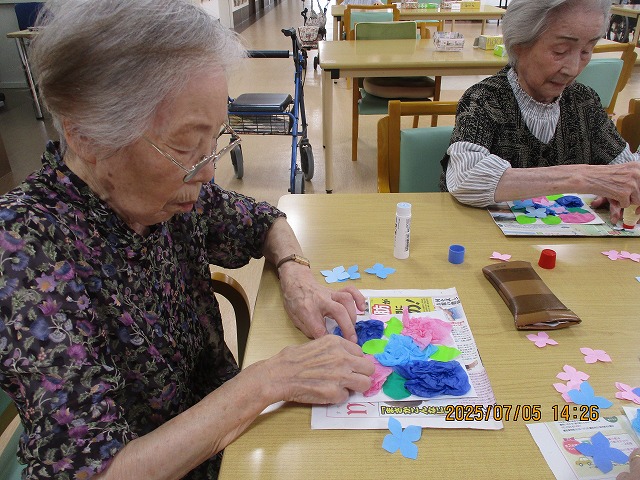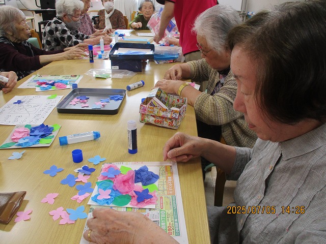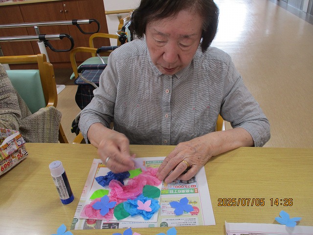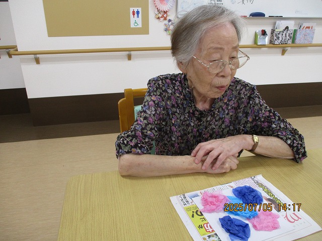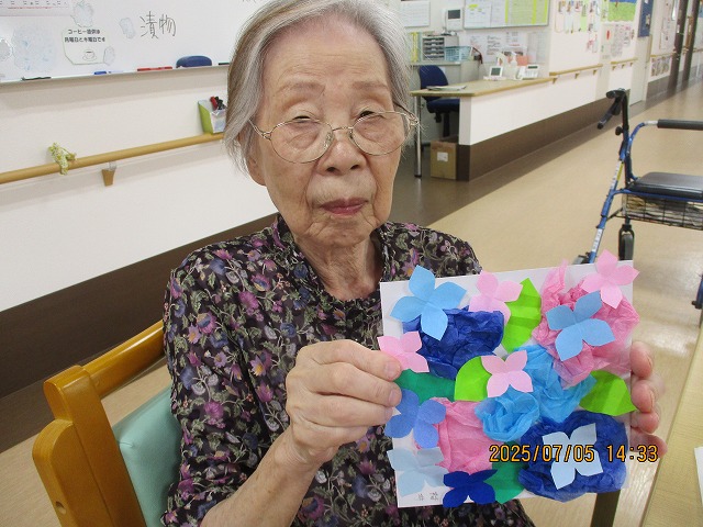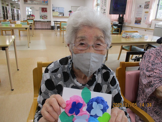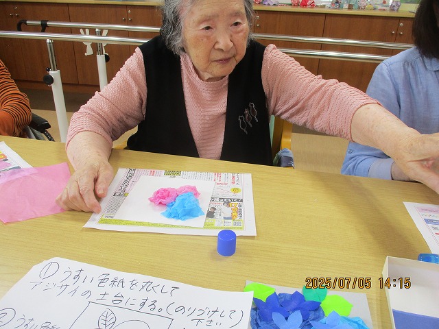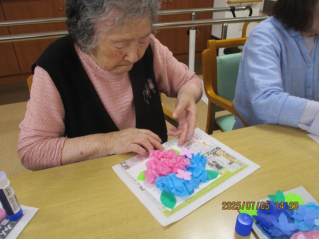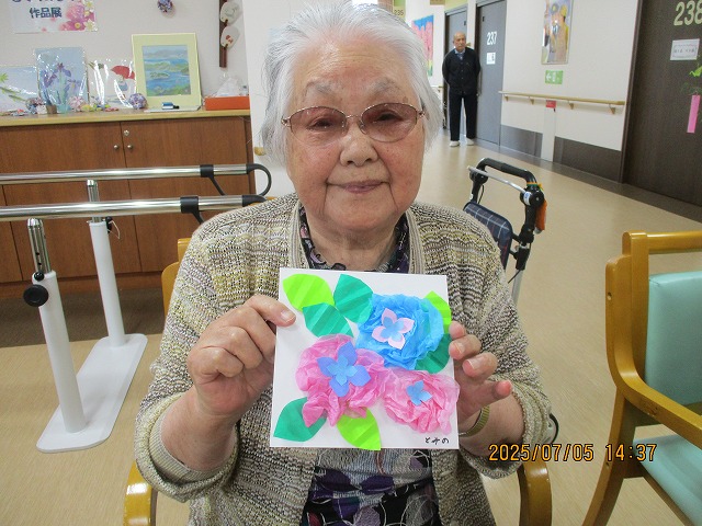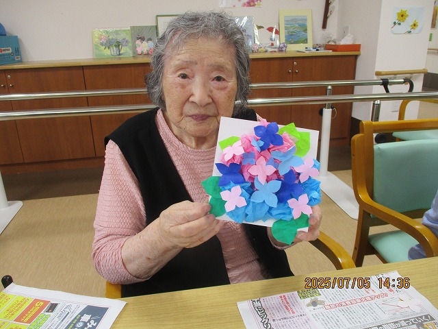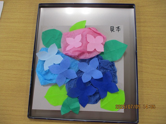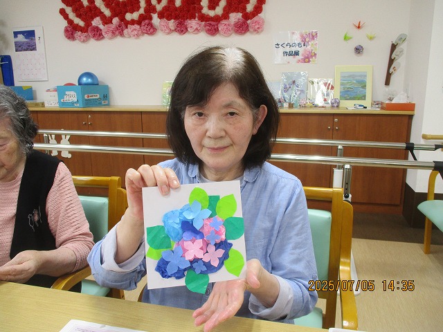 午後からは、季節の花・あじさいの壁飾りを作りました!