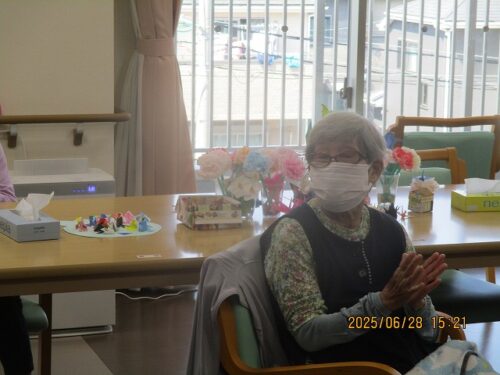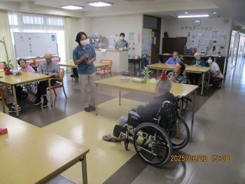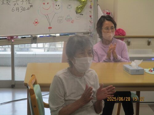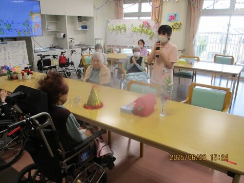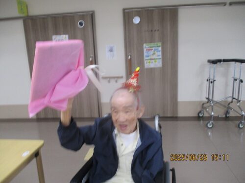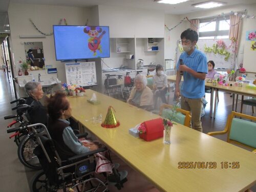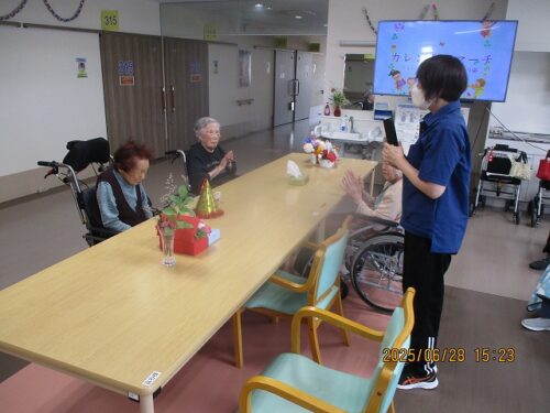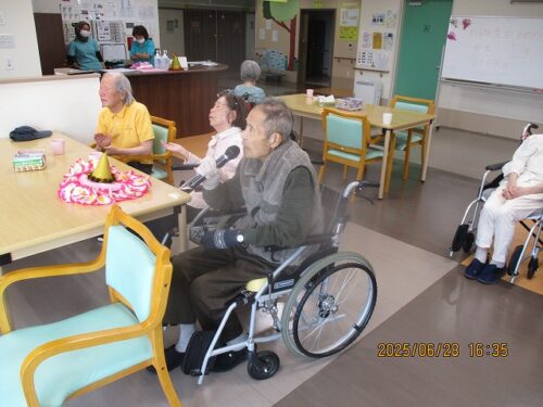 お祝いされた方からは、「来年も皆様にお祝いして頂けるようがんばります。」とご入居者様の前で話しておられました。