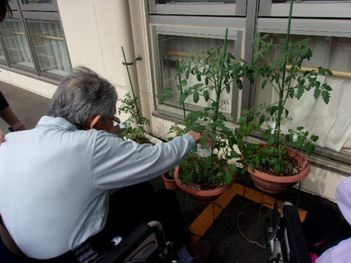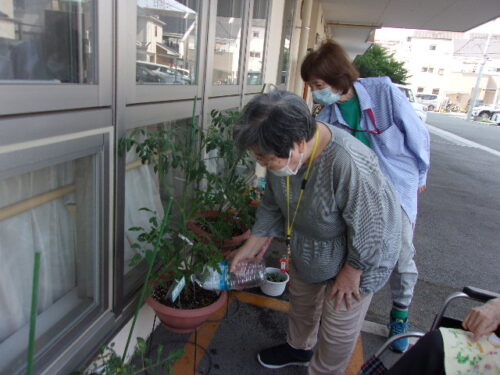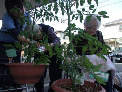朝と夕方にミニトマトの水やりに来て下さりました!!「美味しくなぁ~れ」との思いを込めて暑さにめけず頑張って下さりました!収穫が楽しみですね☆