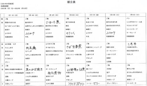 今週の献立をお伝えいたします