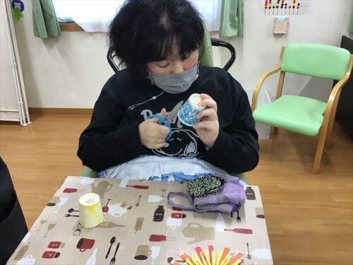 こちらの利用者様は、ハサミを使って紙コップを切っています👀