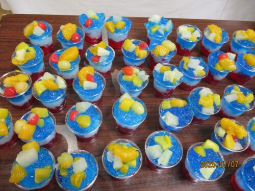 ゼリーも、フルーツと一緒に盛り付けをします。