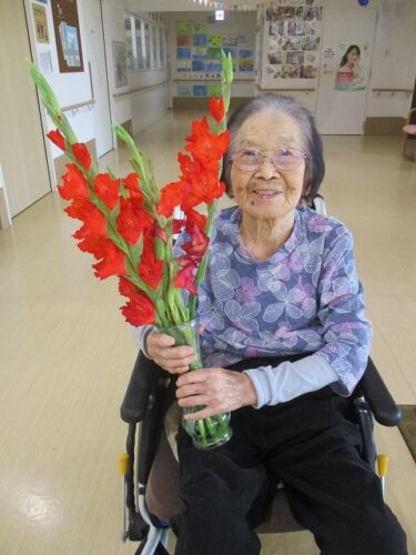 さわやかいなざわ館 お花と一緒に♫【さわやかいなざわ館】 2025-07-09 2025-07-08 皆様、おはようございます🌞 お花と一緒に、ハイポーズ🎶 事務所の前には、ご家族様から頂いた生け花が 絶えず活けられています。🌸 今日は入居者様も、一緒にハイポーズ (^^♪ 暑い中、来館されたお客様に、少しでもやすらぎをお届けできますように。💗 担当:鈴鹿