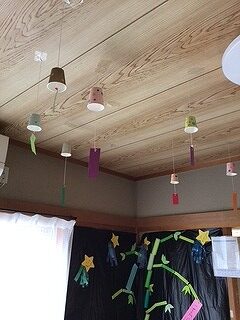 天井に飾って七夕らしくなりました✨🙆