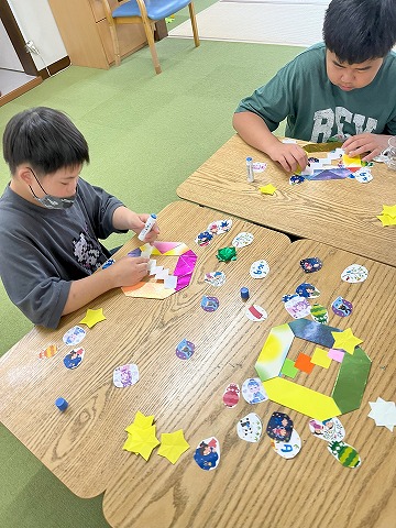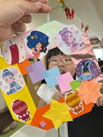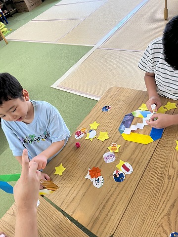 七夕のイラストもあり、夏の季節を感じとれる工作となりました❗