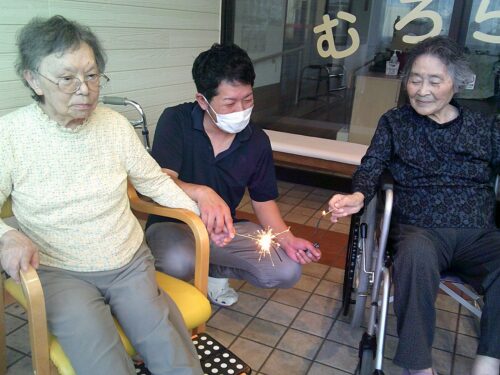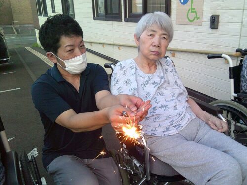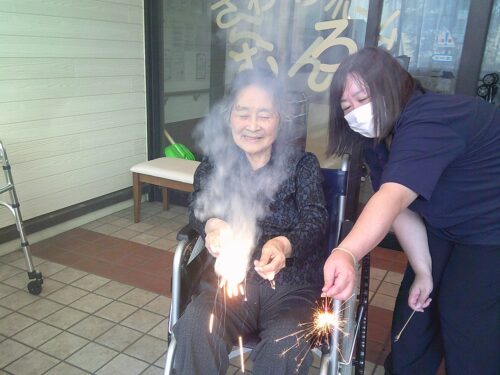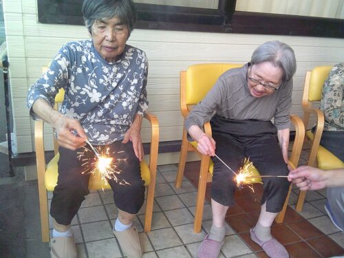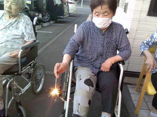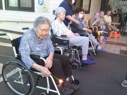 七夕の夜、施設の前では花火大会が行われました♪