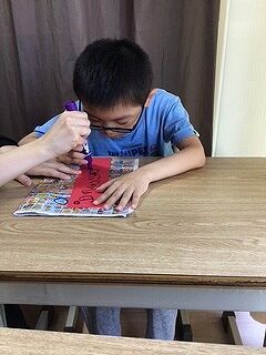 職員と一緒にペンを持ち、左手で紙を押さえながら書くことができました✨