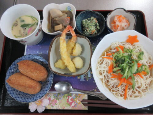 七夕素麺、いなり寿司、天ぷら、紅白なます