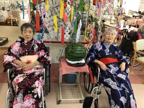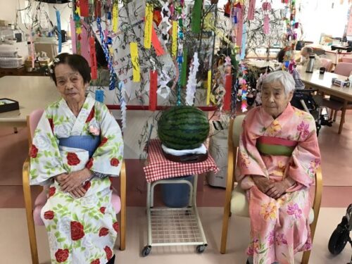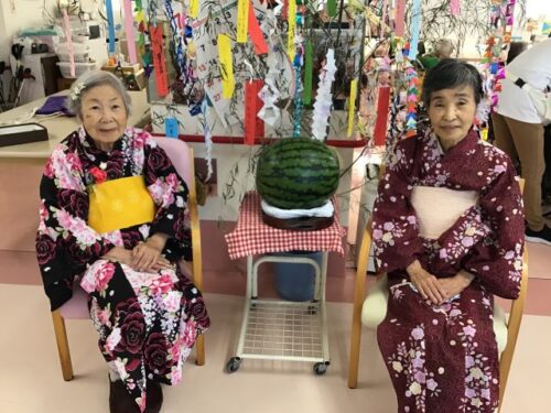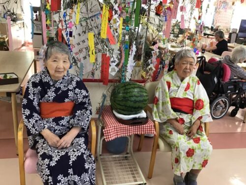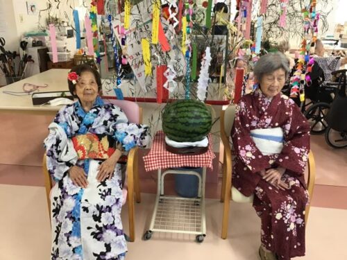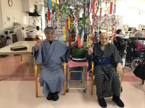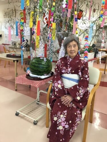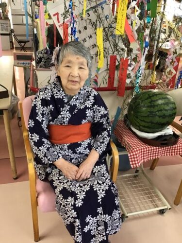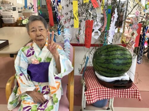 清田デイサービスの七夕と言えば・・・浴衣を着ての記念撮影とスイカ割り🎆