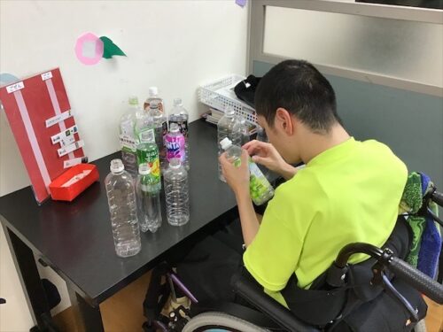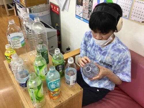 最後はペットボトル潰しの職人さんにお任せしてリサイクル完了です‼️