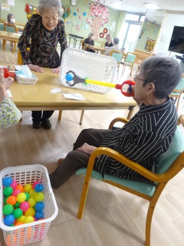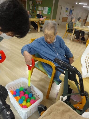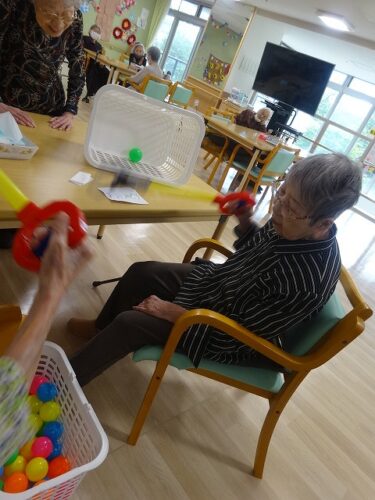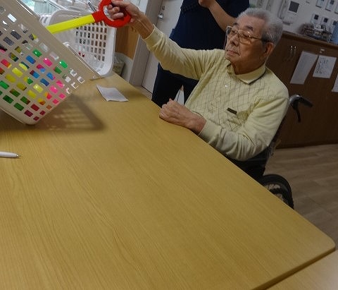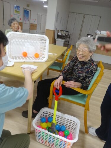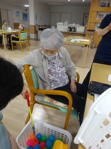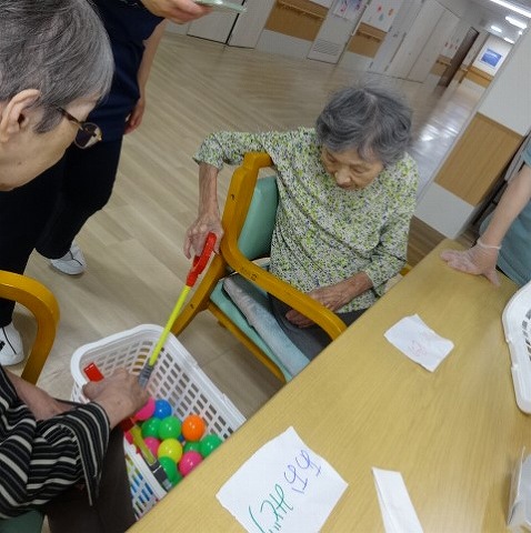 さわやか室蘭弐番館 2階 23日午後♪ 2024-07-24 2024-07-24 皆様こんにちは♪ 昨日の様子をお届けします おやつ前に玉掴みゲームです 指定された色を掴みます 青色ゲット! オレンジゲット!