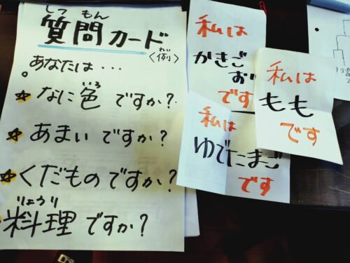 食べ物編というテーマだったので、料理名などを書いていたのですが、いろんな質問から料理名を当てることができたり、果物名をなかなか当てれなかったり。。。