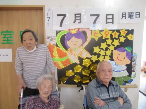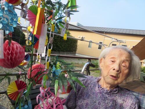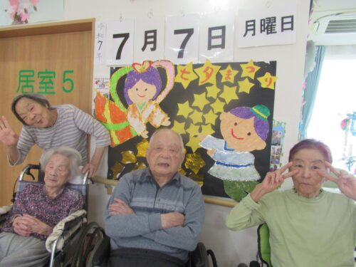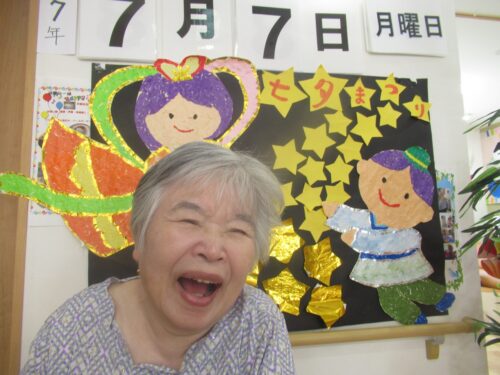 さわやかグループホーム なすしおばら すいせんユニットの様子 【七夕★その②】 2025-07-11 2025-07-11 七夕当日です! 皆様で作った飾りの前で記念撮影です(*^_^*) 皆さま良い笑顔ですね(*^_^*) 彦星様⁉ お天気が良いのでベランダへ出てみました🌞 七夕はまだまだ続きます(*^_^*)