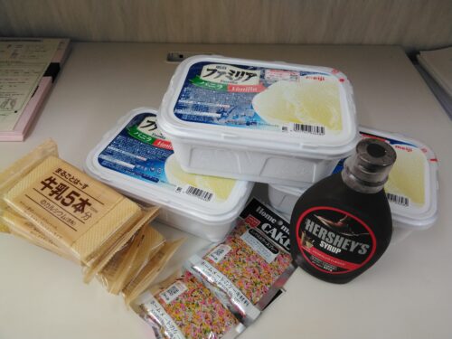 今日は、アイスクリームレクに必要な材料の買い出しに
