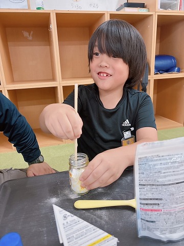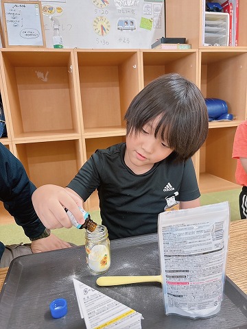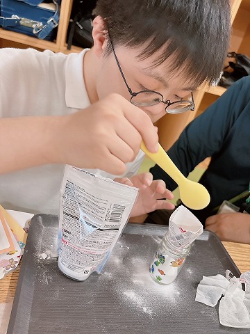 デコレーションが終わったら、重曹を入れていきます