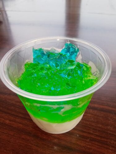 杏仁豆腐をベースにお好きな色のゼリーをトッピングしていただきました