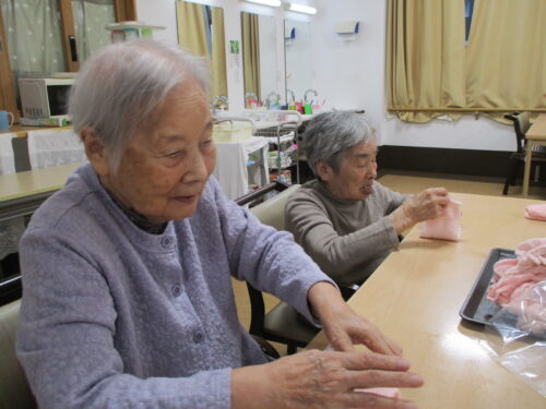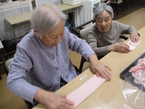 おしぼり畳むよー!といって