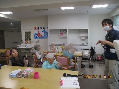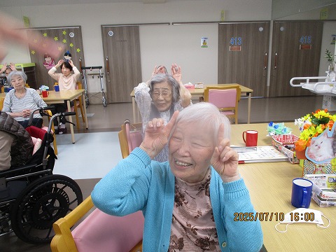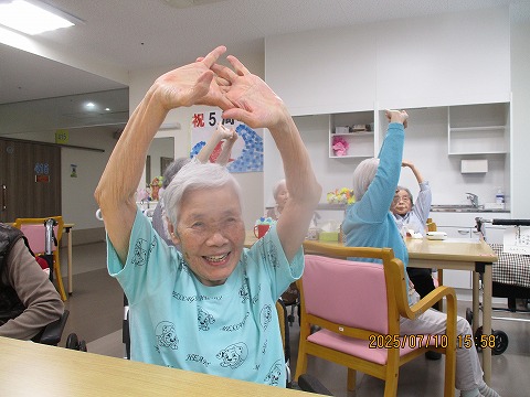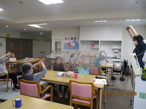 おやつ後から多くの方に集まって頂き、リズム体操を行いました。