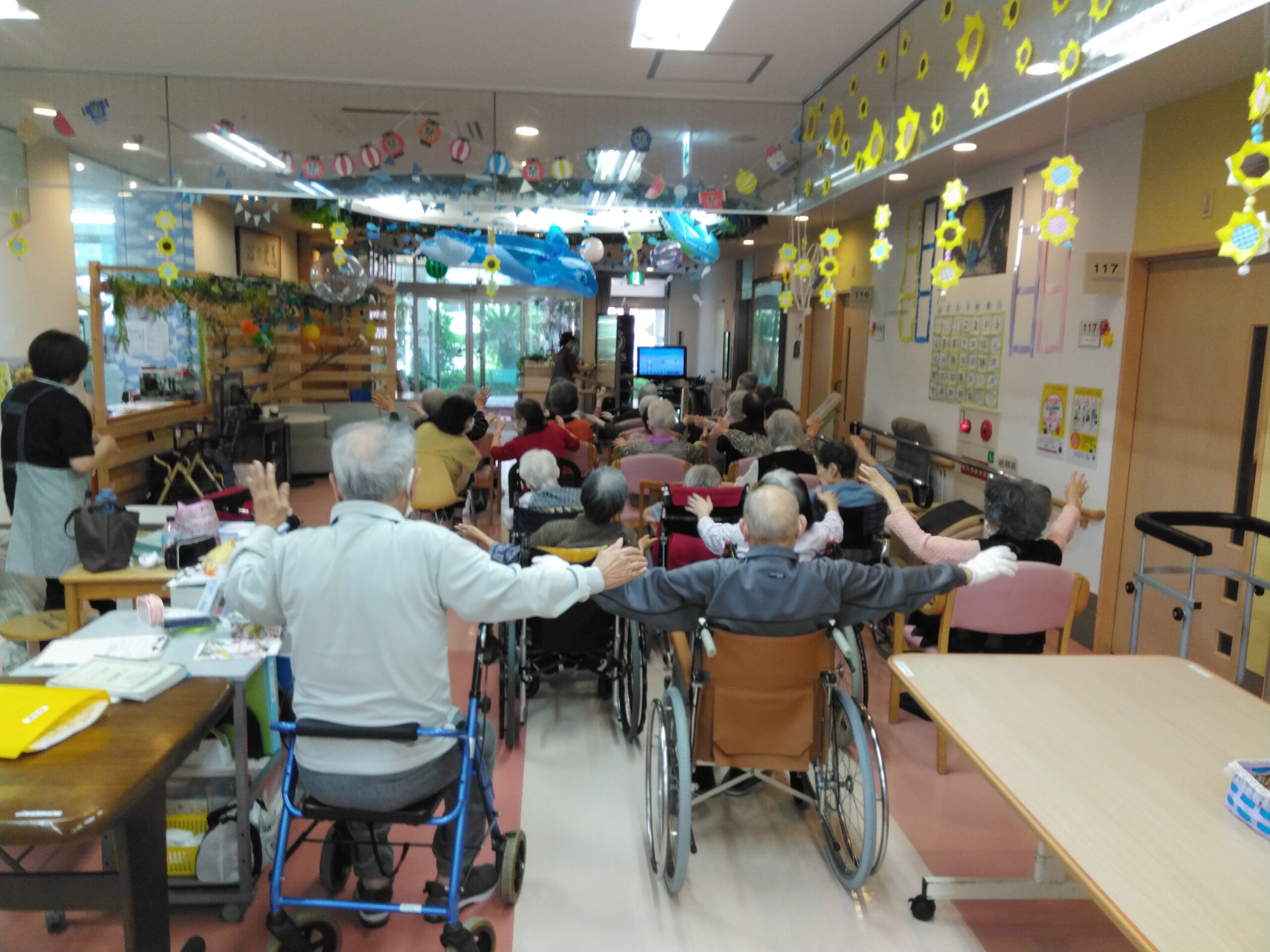 さわやか花美弐番館 さわやか花美館 みんなで朝の体操 2025-07-14 2025-07-14 毎朝に行う体操の様子です 朝のあいさつ、ラジオ体操、発声練習、最後にカラオケの順番で元気よく行きましょう!!