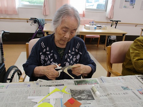 彩とりどりの色画用紙を型に合わせて切り取っていきます✂