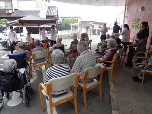 今回、祇園太鼓に来ていただき、館の前で演奏していただきました^^