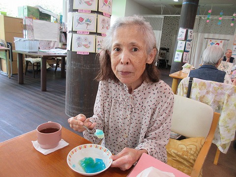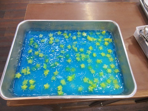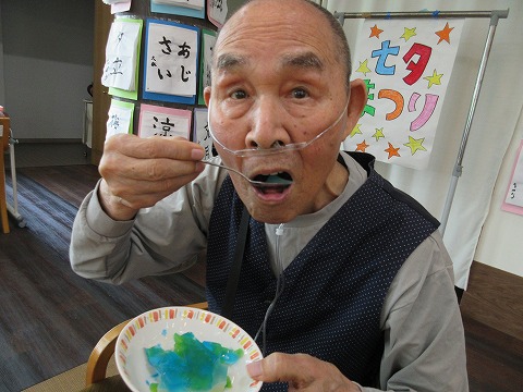 おやつにも職員手作りの、涼しげな天の川にみたてたキレイな寒天を召し上がっていただきました。
