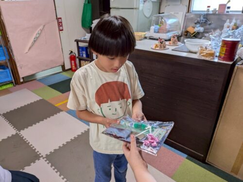 早く帰ってきた児童さんにお手伝いして