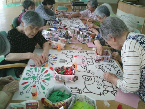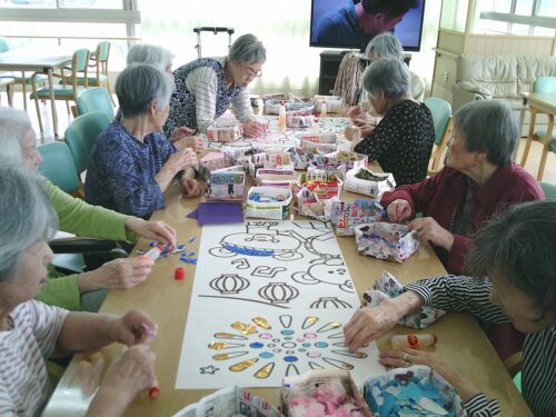さわやか室蘭館 2Fちぎり絵♪ 2025-07-15 2025-07-15 皆様こんにちは! 本日は、2Fの午後の様子をご紹介します(*^-^*) 夏のちぎり絵を作成されておりましたよ🎇 色合いを相談しながら、協力して貼っております! 皆様真剣な眼差しです(^^)/ とても楽しみながら行われているのが素晴らしいですね♡