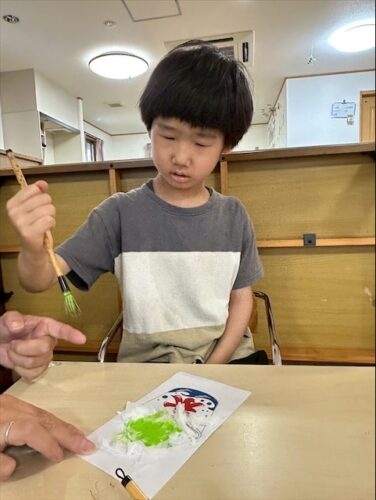 好きなシロップに模した絵の具でかき氷を美味しそうに装飾していきます。