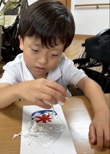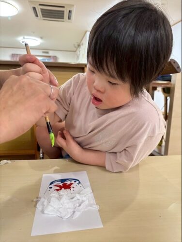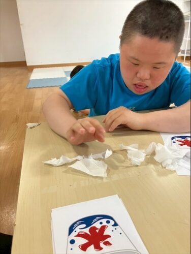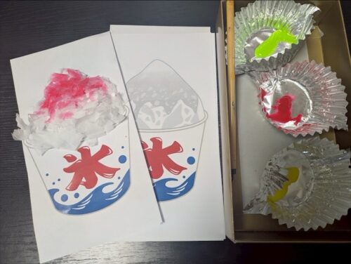 ちぎって、貼って、塗ってみんな美味しそうなかき氷🍧を作ってくれました。
