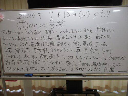 さわやか室蘭弐番館 3階 15日活力朝礼♪ 2025-07-16 2025-07-15 皆様こんにちは♪ 昨日の様子をお届けします 9時からラジオ体操です 最後は大きく深呼吸です 続いて頭の体操 ”ま”のつく言葉お答え頂きました 素敵な一日になります様に☆