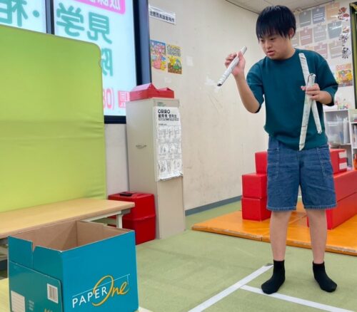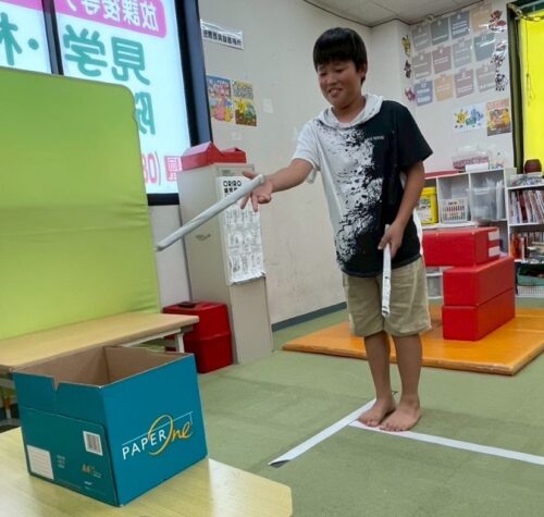 棒を3本箱に投げ入れます。結構難しいですが、みんな楽しんで投げてくれました♪