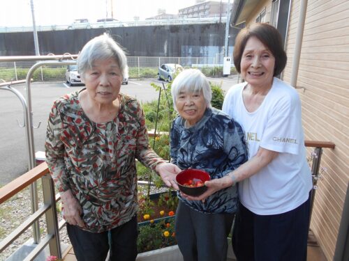 さわやかグループホーム なすしおばら つつじユニットの様子 2025-07-16 2025-07-15 ベランダのトマト🍅🍅🍅の収穫をして頂いてます。 これで3回目の収穫です🍅🍅🍅 優秀なトマト🍅🍅🍅ですね(*^_^*) 良い笑顔ですね(*^_^*) トマト🍅🍅🍅はマリネにして頂きました(*^_^*)