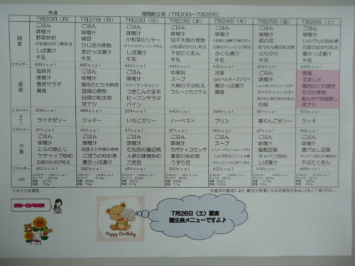 本日は室蘭館の今週の献立をご紹介します(*'▽')