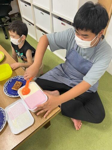 アイスの味やトッピングをチョコやはちみつなど好きなものを乗せました✨