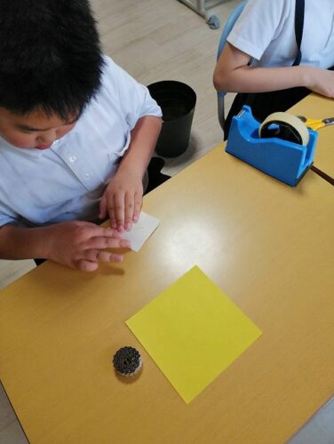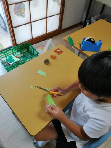 指先で片面段ボールを巻いたり、折り紙をおったり集中して作業に取り組みました。
