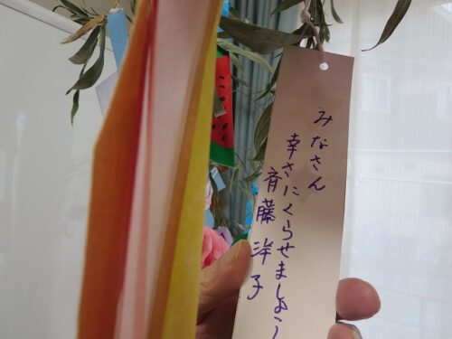 さわやかグループホーム なすしおばら 七夕【グループホームなすしおばら】 2024-07-24 2024-07-24 七夕の日 皆様の願い事は・・・☆ 願いが叶いますように☆彡 さわやかグループホームなすしおばら 担当 郡司
