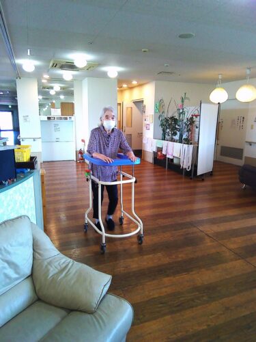 毎日365歩のマーチに合わせ、元気に歩行訓練をされています。