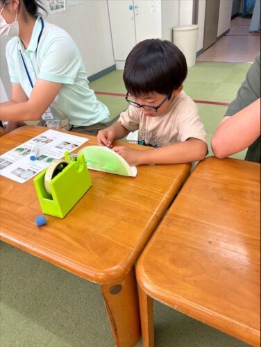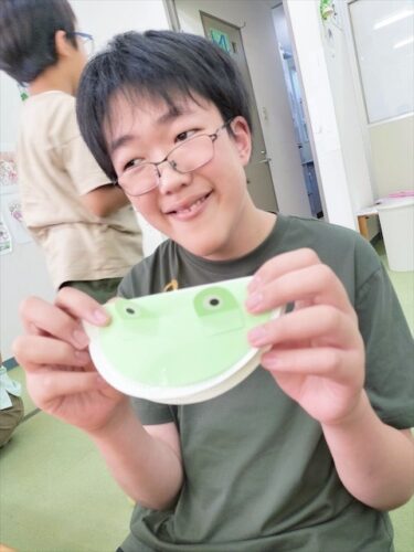 あかいわ館では、先日、制作活動でカエルのカスタネットを作りました🐸