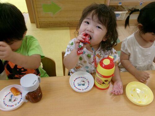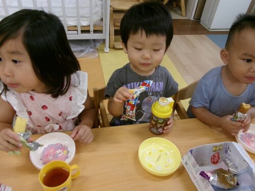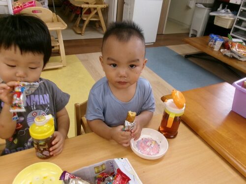 お買い物レクレーションで買ったお菓子でおやつタイム!