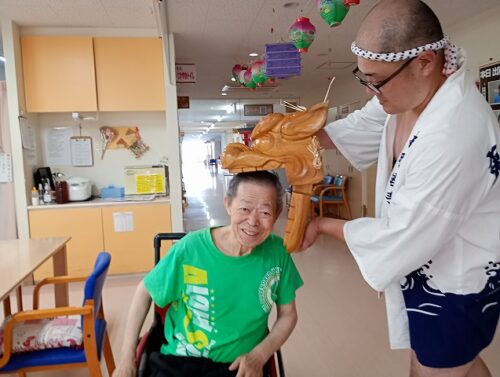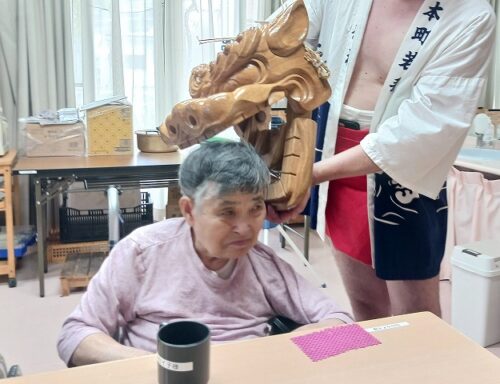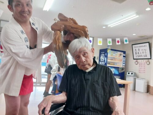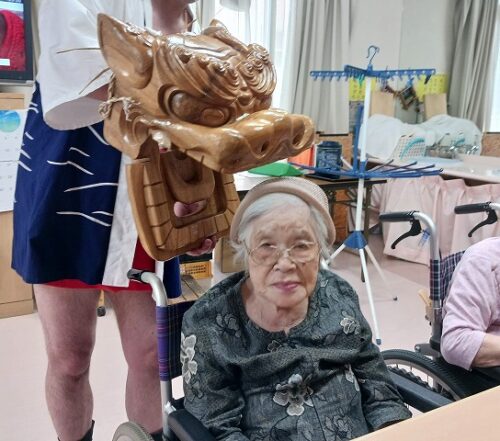 さわやかいずみ館 獅子入れ① さわやかいずみ館 2025-07-16 2025-07-17 こんにちは😄 7月15日は 博多山笠ということもあり いずみ館のある 朝倉でも 甘木祇園山笠があります😆 そこで 獅子入れに 来られました😆 皆さま 噛んでいただき 喜んでいただきました✨