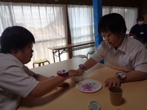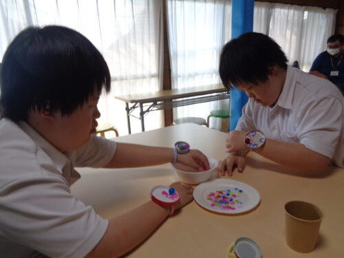 さわやか愛の家 おおかわ館 わけわけミッション【愛の家おおかわ館】 2025-07-18 2025-07-18 こんにちは✨ さわやか愛の家おおかわ館です😍 今回は「わけわけミッション」をしました‼ ビー玉やビーズを落さずに 両手につけた腕輪にゆっくり置いています🎵 集中力が上がりました⤴