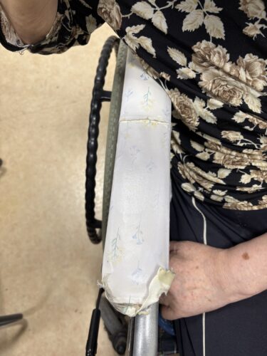 今回は車椅子のアームレストのカバーが剥がれてしまったので