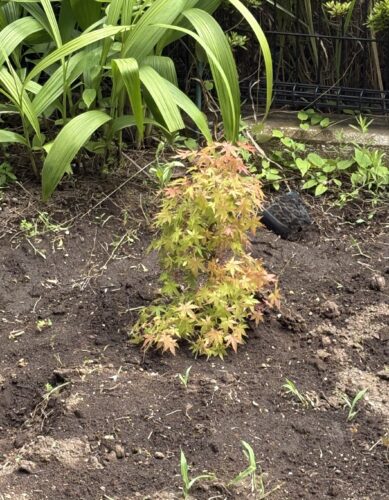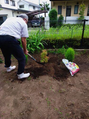 本日はH様の自宅より 新しく仲間入りした 紅葉の鉢植えを地植えにする様です😲