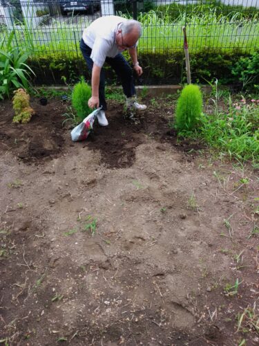 たっぷりと肥料を混ぜて土をなじませて準備するようです(^-^)