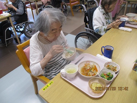 中華や魚、鶏肉等のお食事が朝昼夕と出てきておりますが、ほとんどの方がしっかりと召し上がられております。