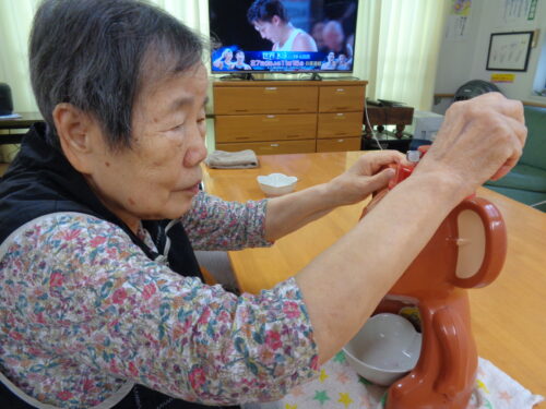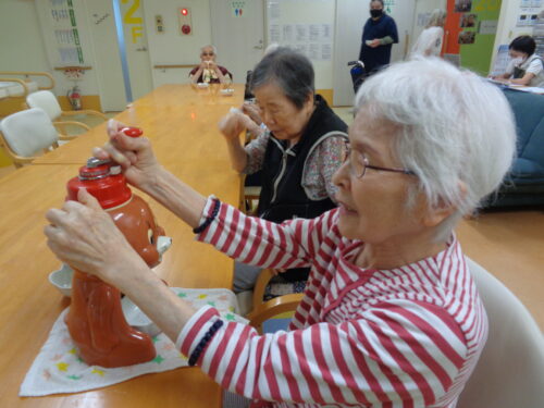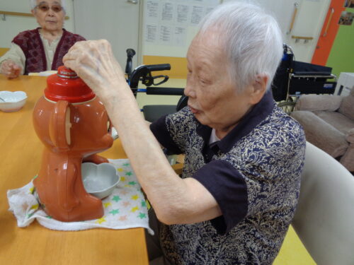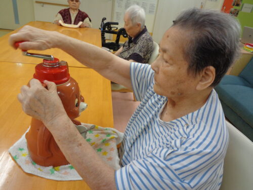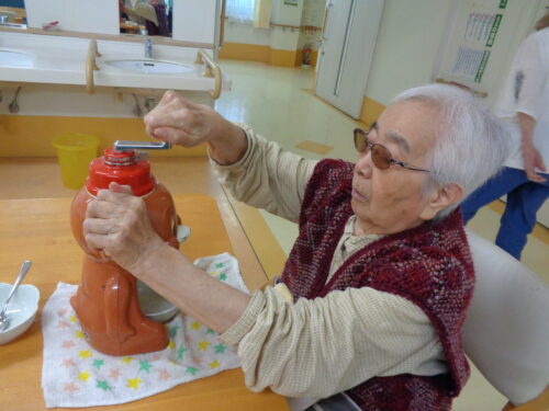 入居者の皆様も一緒にかき氷作りに挑戦中^^