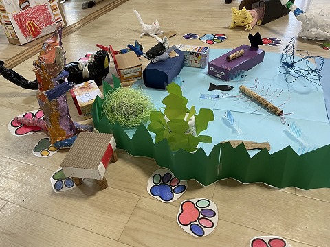 装飾を作ったり、猫に色を付けたり、段ボールでハウスを作ったりと、朝から夕方まで取り組みました!!